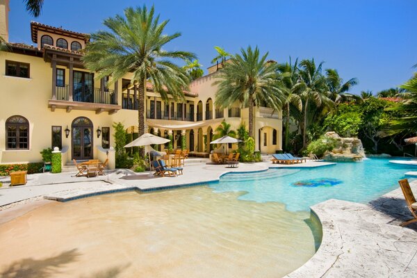 exterior home villa pool house palm chairs beds tables chair.1920 x 1200, 472 kB