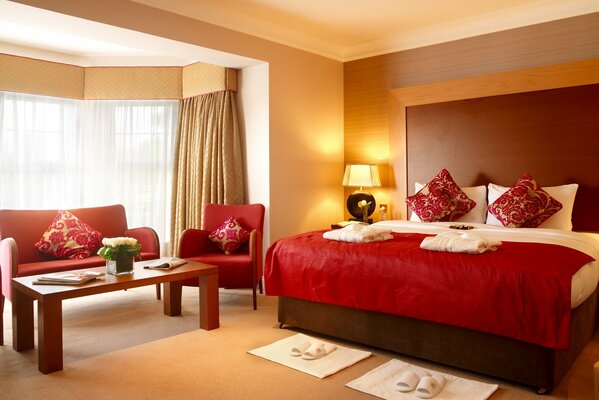 interior design bedroom bed pillow sofa chair table lamps .1920 x 1478, 379 kB