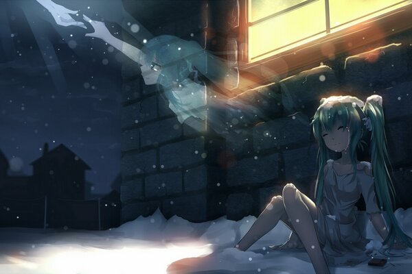 art sen ya vocaloid girl hatsune miku snow winter ghost tears house window light