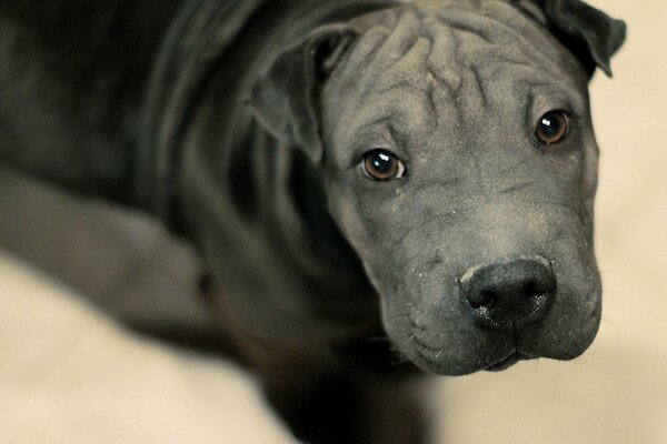 Sharpey's puppy sleeps on the floor