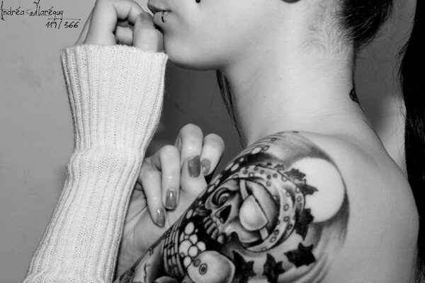 tattoo skull black and white shoulders arm1920 x 1200, 265 kB