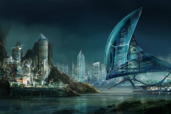 night cityscape sid75 sci-fi fiction town night buildings lights3100 x 1200, 415 kB