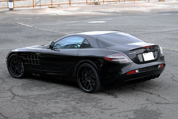 mercedes benz slr mclaren black mercedes-benz rear view reflection asphalt of the crack