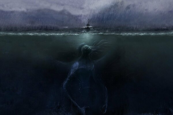 A small boat caught in a storm