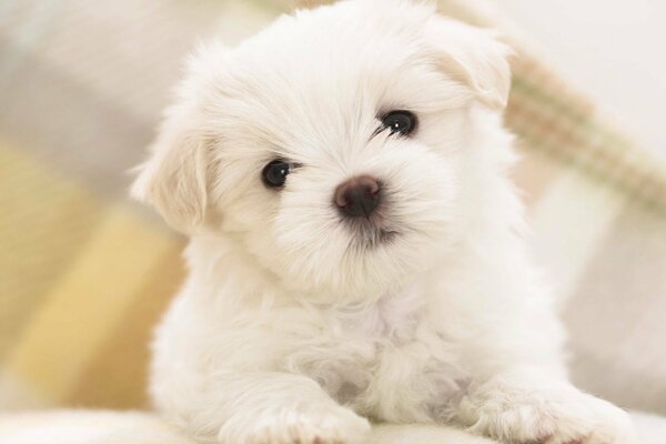 The raccoon is sitting in a tree, she has small eyes