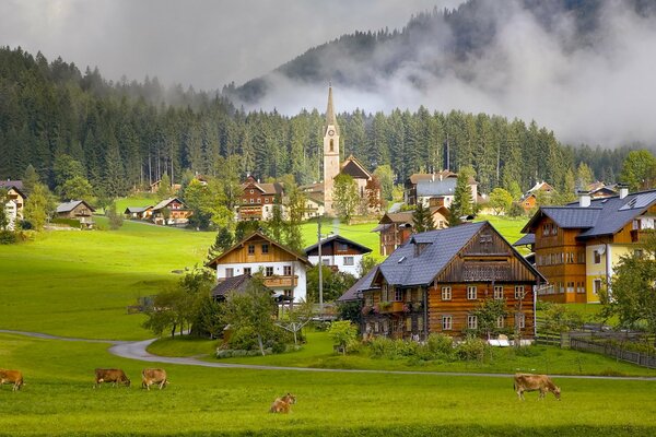A village in Austria where cows graze1920 x 1080, 512 kB