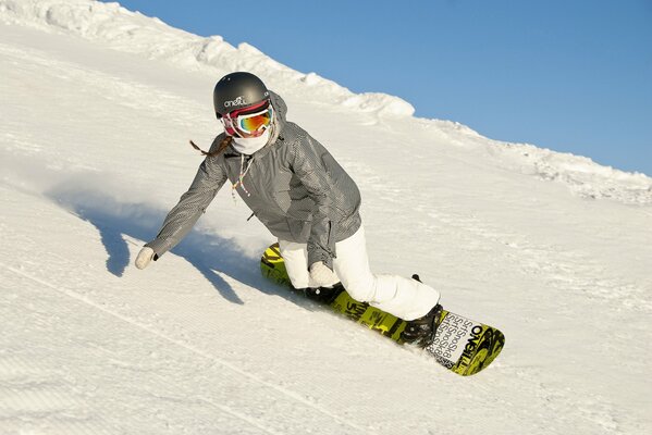 snowboard snowboarding snowboarder girl descent winter snow mountain snowcat