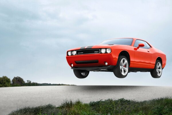 dodge challenger srt8 car flies orange machine in the air speed1920 x 1200, 225 kB