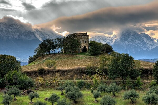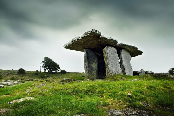 A lonely stone in the middle of the lake cloudy in the afternoon