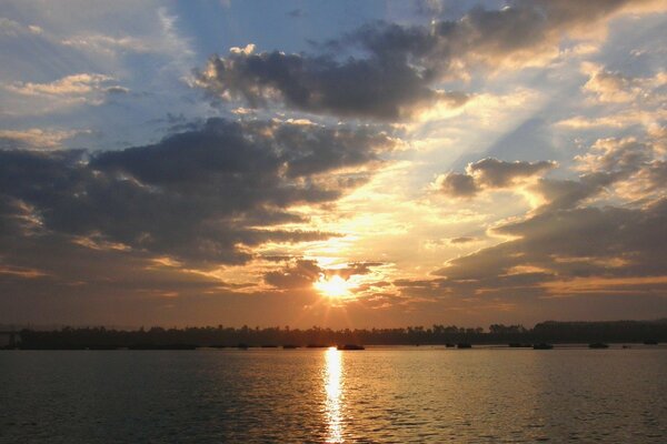 Landscape the sun rises , gray clouds, forest in the distance, a glint of water1920 x 1080, 288 kB