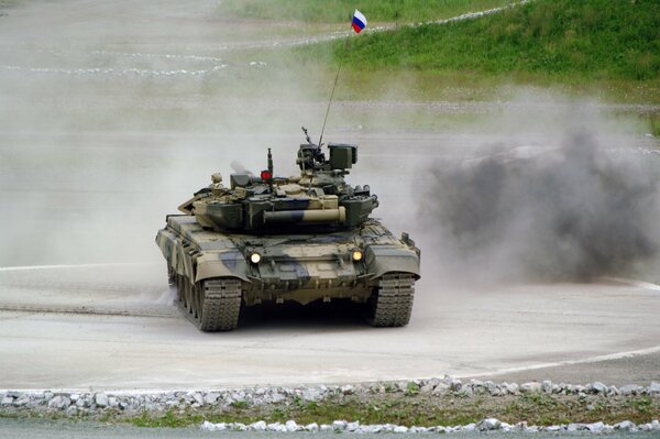 main battle tank russian t-80u on the tank biathlon 2013