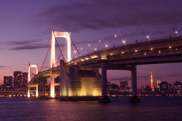 japan tokyo capital metropolis bridge lights lighting lamps gulf house buildings night lilac purple sky clouds1930 x 1200, 244 kB