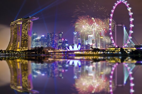 sky holiday fireworks reflection architecture night singapore light city state lights gulf skyscraper metropolis tree1920 x 1816, 534 kB