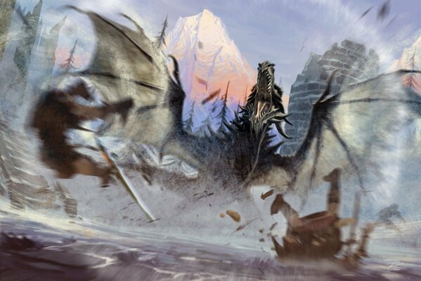 the elder scrolls skyrim art duvakin dragon mountain snow cry1920 x 1080, 301 kB