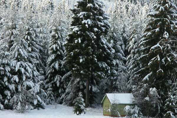 Forester's house in the forest in winter with snow and fir trees, rattlesnake forest1920 x 1200, 712 kB