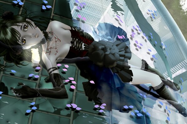 cherry girl is petals water reflection cities1957 x 1200, 329 kB