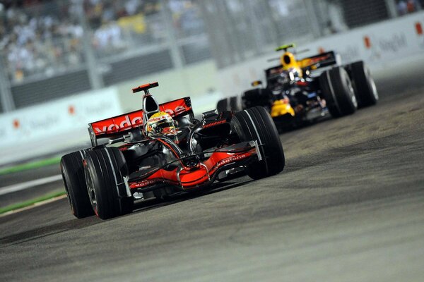 singapore grand prix 2008 marina bay street circuit marina bay lights night vodafone mclaren mercedes car mclaren mp4-23 lewis hamilton speed formula 1 f1 formula-1 race track photo1920 x 1200, 324 kB