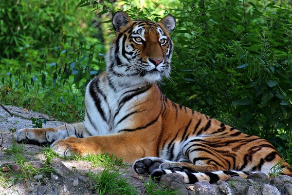 Striped predator tiger in autumn foliage1680 x 1050, 300 kB