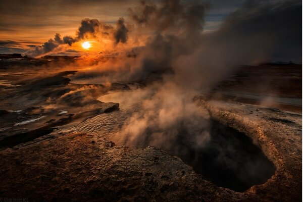 crater volcano geyser pairs cleft lake sun sunset mountain smoke water steam nature mount sky hd1920 x 1273, 332 kB