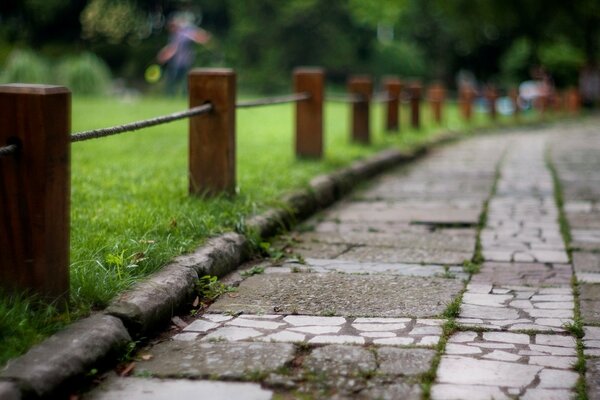 nature close up path alley grass green meadow fence fencing stones blur background wallpaper widescreen full screen hd wallpapers fullscreen