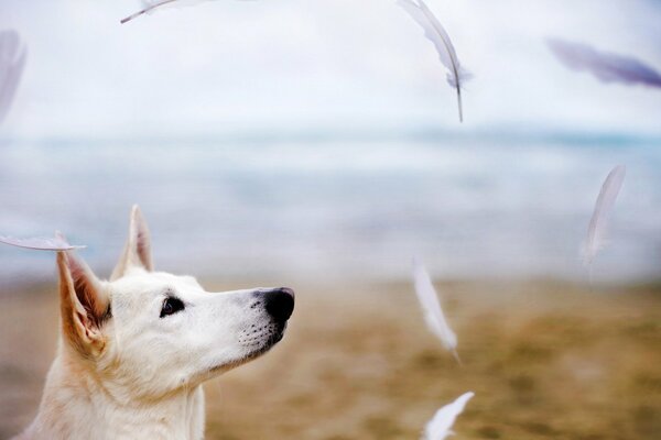 Fluffy white feathers on a rainbow background1920 x 1200, 125 kB