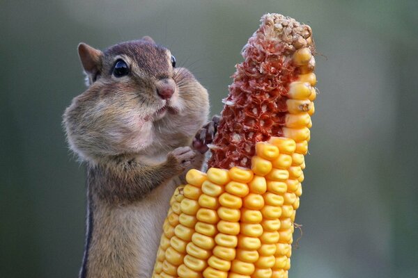 Serious chipmunk eats corn1920 x 1200, 347 kB
