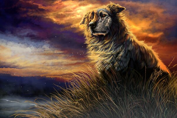 wolfroad dog sunset grass clouds1920 x 1228, 380 kB