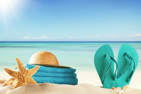 summer vacation beach accessories sea sun starfish holiday sports sand shale hat towel shells1920 x 1555, 349 kB