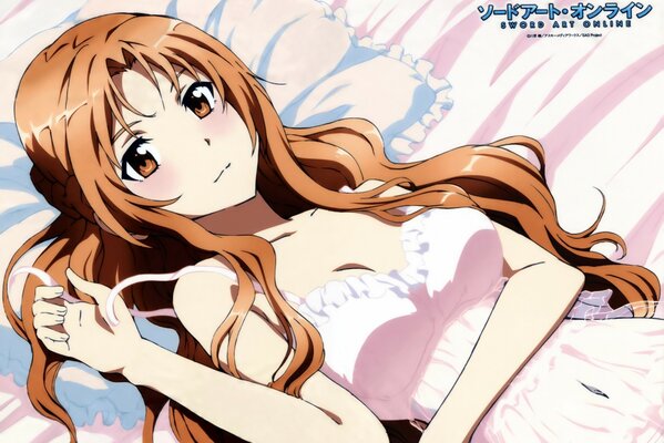 brown eyes bed long hair yuuki asuna brown hair1920 x 1336, 377 kB