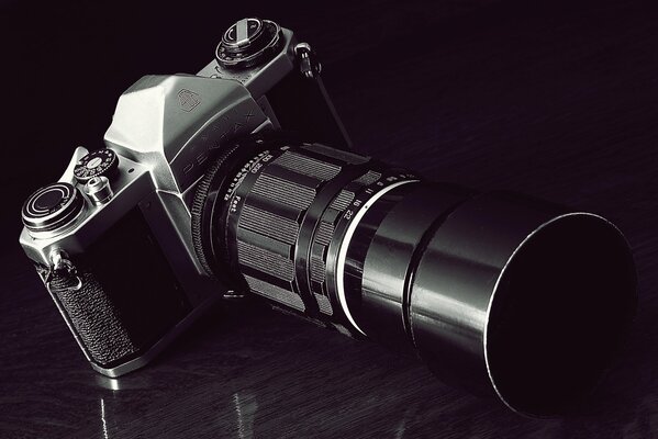 pentax sv single-lens mirror a camera komura 200mm f3.5 sankyo kohki japan fast lens with a fixed focal length of 200mm reflection