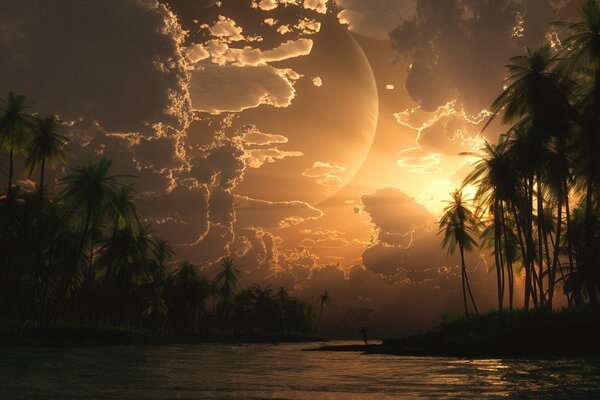 Golden sunset over the sea in the jungle1920 x 1080, 303 kB