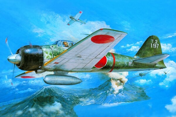 art sky mitsubishi a6m3 zero japanese deck fighters volcano crater water ww2 picture1920 x 1386, 418 kB
