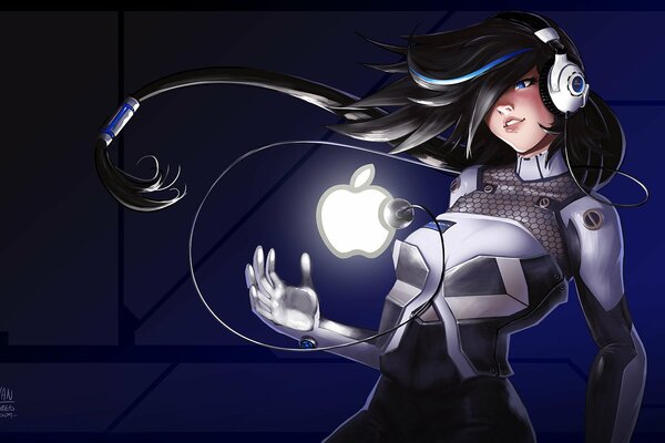 A girl with the apple logo is drawn1680 x 1050, 195 kB