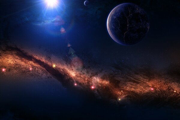 Incredibly beautiful space, planets and rainbow nebulae2156 x 1200, 230 kB