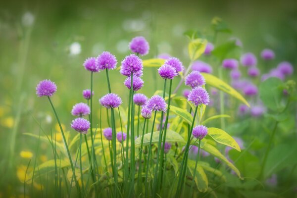 chives purple flower bloom grass green