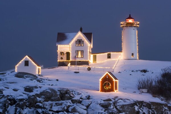 sky square house christmas tree winter snow spruce holiday christmas night lights1920 x 1080, 626 kB