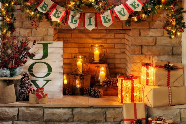 holiday happy new year merry christmas fireplace candles gift boxes gift box new year christmas1920 x 1397, 628 kB