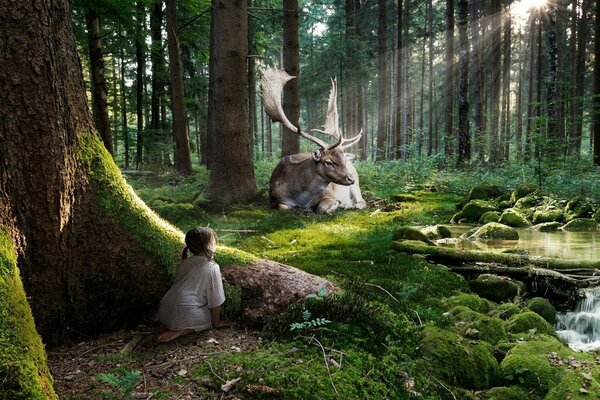 girl reindeer forest observations rays creek1920 x 1080, 641 kB