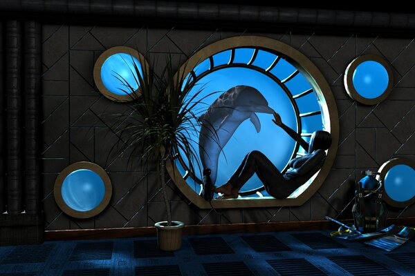 room window water girl dolphin under water palma rendering1920 x 1200, 320 kB