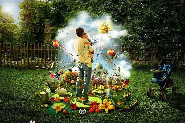 father child green fence1280 x 1024, 522 kB