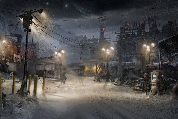 dead space 3 electronic arts visceral games art snow building of the tube mountain john carver weapon armour isaac clarke wire dressing pillars light floodlight moon target star numbers equipment prot