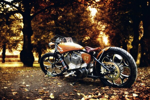 harley davidson bike nature autumn photo park leaves tree1920 x 1080, 565 kB