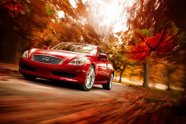Red-haired infiniti on the autumn road1920 x 1280, 408 kB