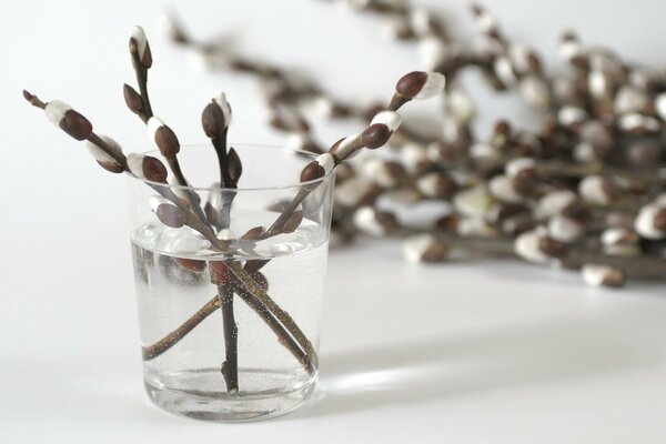 Willow branches in a transparent glass