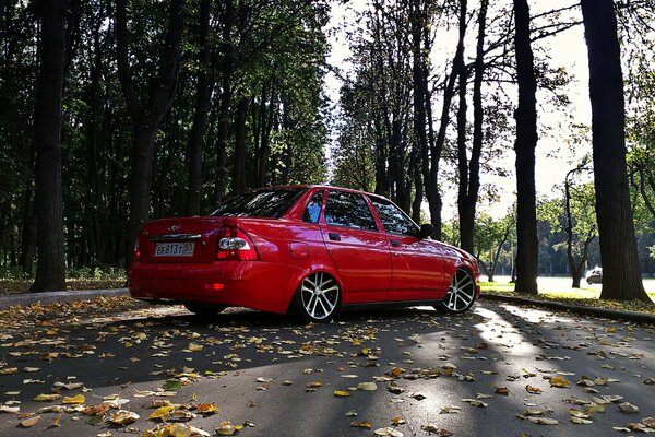 lada 2170 priora red drives very road leaves2129 x 1200, 853 kB
