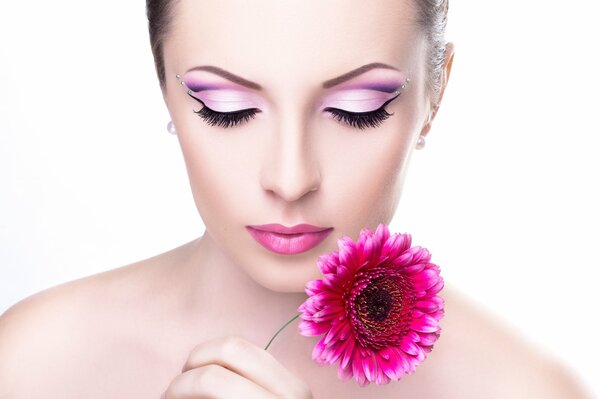 girl model make-up shadow eyelash face lips flower shoulders neck background1920 x 1221, 179 kB