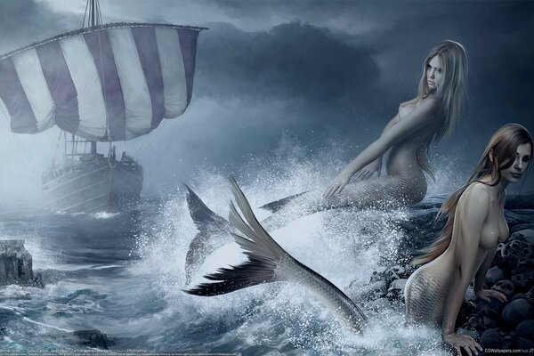 ship girls sailboats sea mermaid1920 x 1200, 624 kB