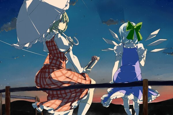 kazami yuuka green hair bed grass dress yakumo yukari umbrella
