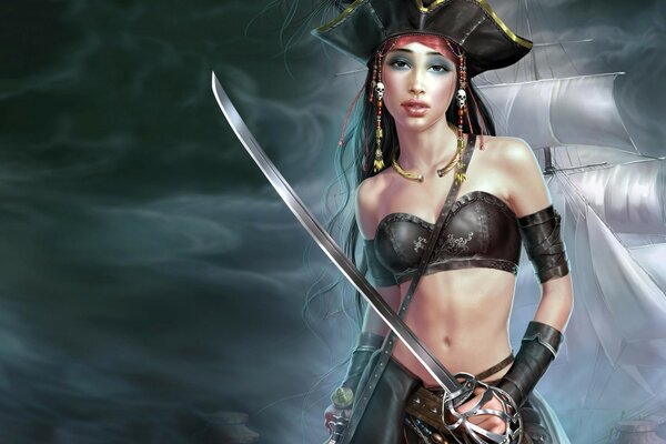 pirates art weapon girl ship sword cornered hat smoke sail sailboats hat1920 x 1200, 303 kB