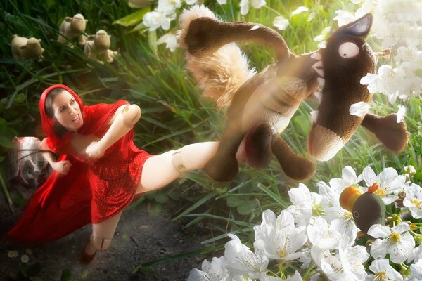 art marilyn zhuang red riding hood girl wolf light coat1920 x 1863, 228 kB